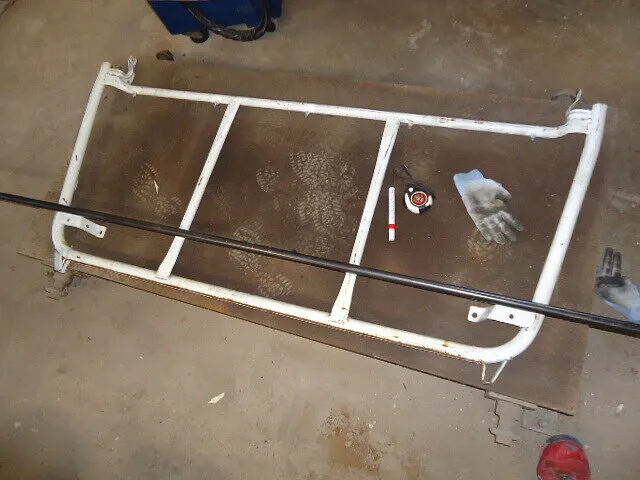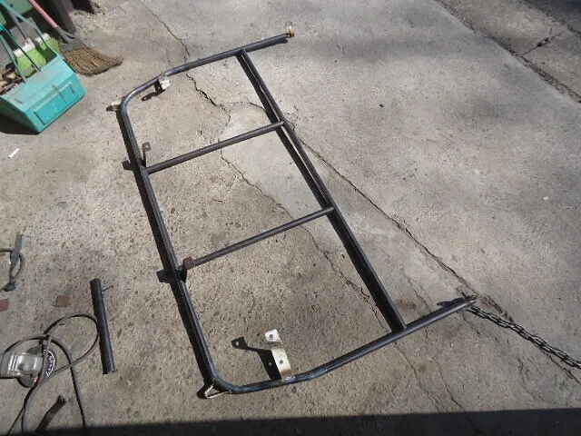 長物を下に向かって縛り付けると鳥居が捻るので上側にもフラットバーを曲げ加工して溶接後、車体に穴をあけてボルトで止めました。