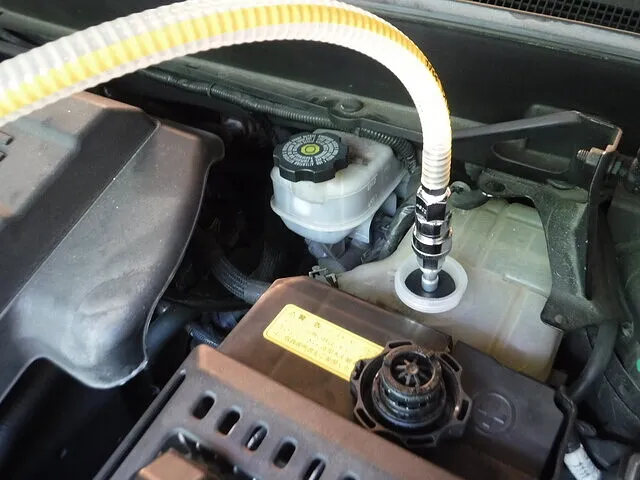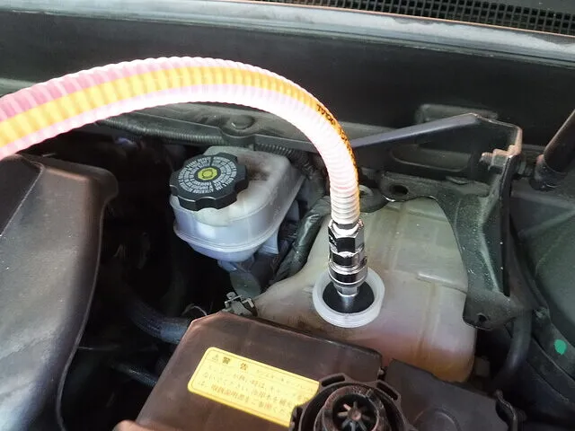 ブレーキオイルを加圧式で圧送交換します。