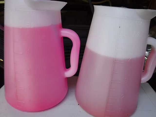 右がドレンアウトさせたSRXのLLCです(デキシクール)