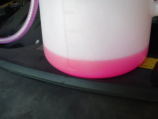 抜き取ったLLCより1L多めに用意しておきます。(充填量のチェックとエア噛み防止です)