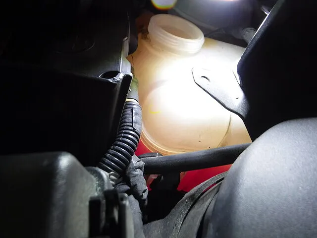 新品のLLCにバキュームチャージャーのホースが入っています。