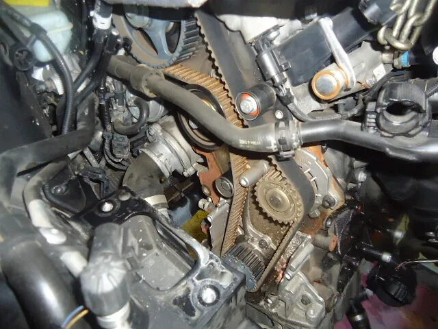 コンプレッサーの交換と並行してタイミングベルト等の交換を行います。