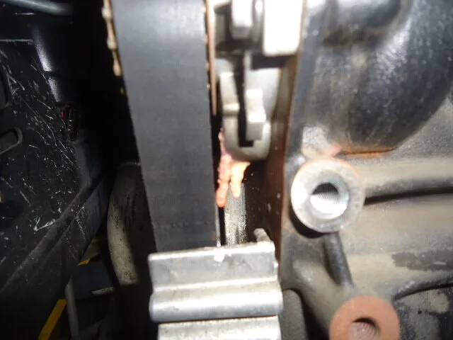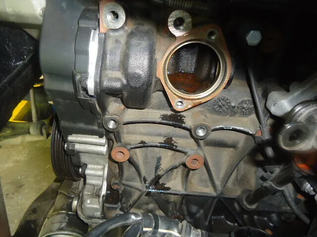 ですがこの車両はオイルシールからの漏れがあるのをベルトカバーを外す前から下から見て分かっていました。