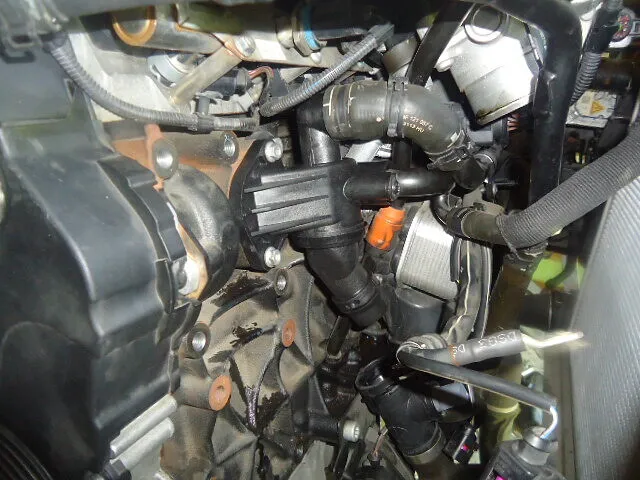 輸入車の樹脂部品は年数が経つと高確率で割れたりしてオイル、クーラントなどが漏れ出します。