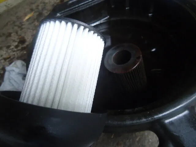オイルパンがアルミなのでワッシャーの形状の溝がガリガリにできています。