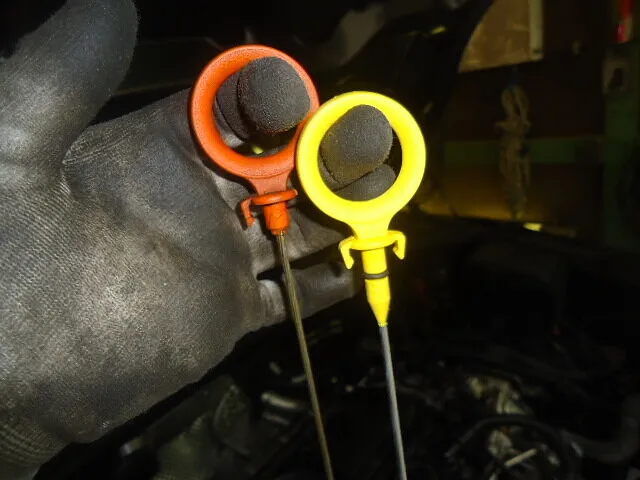 エンジンオイルレベルゲージも劣化しすぎてツメが割れているので交換。